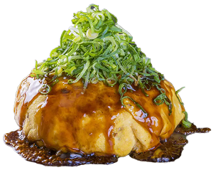 お好み焼の生地にイカを混ぜて焼きあげた関西のソウルフード。