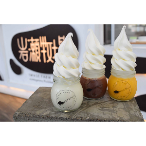自社牧場の新鮮で高脂肪、無調整牛乳で作ったソフトクリームは濃厚でさっぱり。